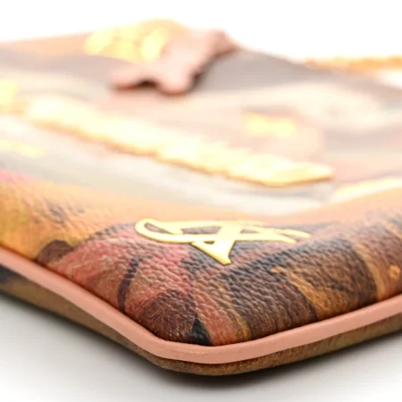 $550.00This Louis Vuitton Masters Jeff Koons Fragonard Pochette Clutch is crafted in coated canvas with a Jeff Koons Fragonard design. It features gold Monogram serti, metallic letters, and colored trimmings, with a detachable gold chain link strap. The rabbit charm zipper pull opens to a pink leather lining with embossed […]