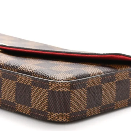 $500.00This Louis Vuitton Damier Ebene Canvas Pochette Felicie Chain Wallet PM Gold Hardware is elegantly crafted in the signature brown Damier Ebene coated canvas. It features a polished gold chain shoulder strap and an envelope-style flap with a secure snap closure. Inside, a red fabric lining houses a pocket and […]