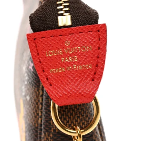 $455.00This Louis Vuitton Damier Ebene Christmas Animation Mini Pochette Accessories is a festive piece crafted from signature Damier canvas with playful illustrations of classic Louis Vuitton trunks. The polished brass chain-link strap and striped leather zipper pull open to a beige fabric interior, perfect for storing essentials with a holiday […]
