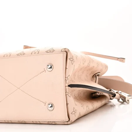 $535.00This Louis Vuitton Mahina Muria in Coquille is a chic shoulder bag crafted of finely perforated Mahina leather in light pink beige. It features a pull cinch cord, braided top handle, optional shoulder strap, and polished silver hardware, with a spacious microfiber interior with a central zipper pocket.