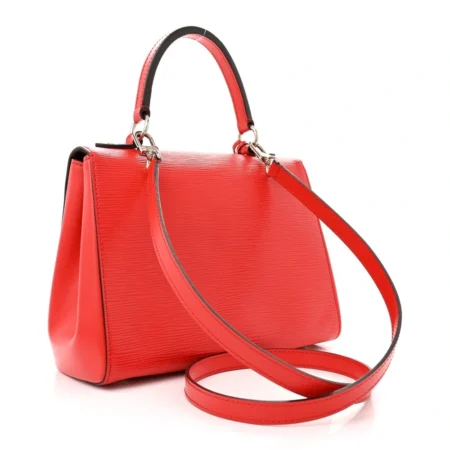 $565.00This Louis Vuitton Vernis Alma BB in Beige Poudre radiates refined elegance with its metallic beige vernis patent leather embossed with the signature monogram. The rolled leather top handles and brass hardware, including a clochette with keys, add luxurious detail. Inside, a matching fabric interior with a patch pocket offers […]