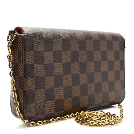 $545.00This Louis Vuitton Reverse Monogram Canvas Pochette Metis PM Gold Hardware showcases the distinctive reverse monogram toile canvas with a lighter brown canvas flap. It includes a black leather strap handle, an adjustable monogram shoulder strap, and a rear zipper pocket. The S-lock secures the flap, revealing a black microfiber […]