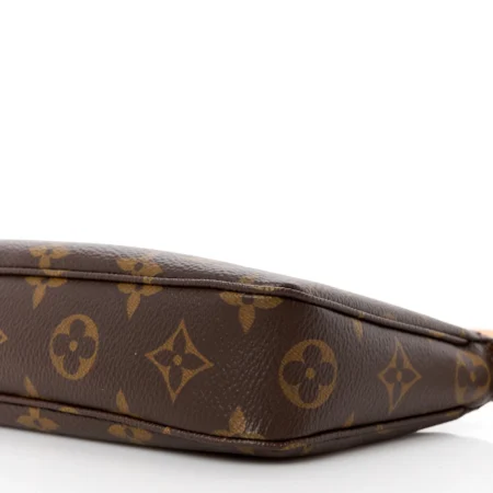 $520.00This Louis Vuitton Monogram Canvas Pochette Accessoires NM BB Gold Hardware showcases the rich heritage of Louis Vuitton. The iconic monogram canvas, coupled with a removable vachetta strap and gold hardware, makes for a timeless accessory. Inside, the zipper reveals a brown fabric interior equipped with a practical pocket.