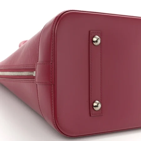 $615.00This Louis Vuitton stunning bowler-style tote is crafted of Louis Vuitton’s signature textured epi leather in dark pink. The bag features matching rolled cowhide leather top handles, a solid leather base, and silver hardware. The zippers open to a matching microfiber interior with patch pockets.