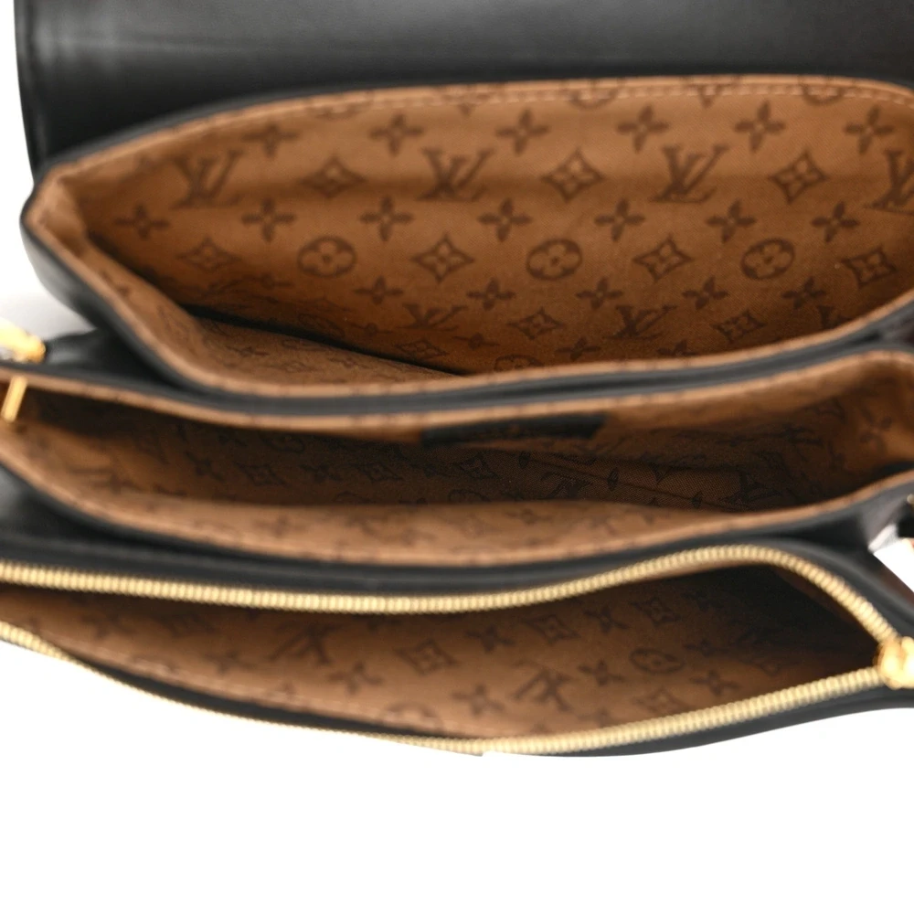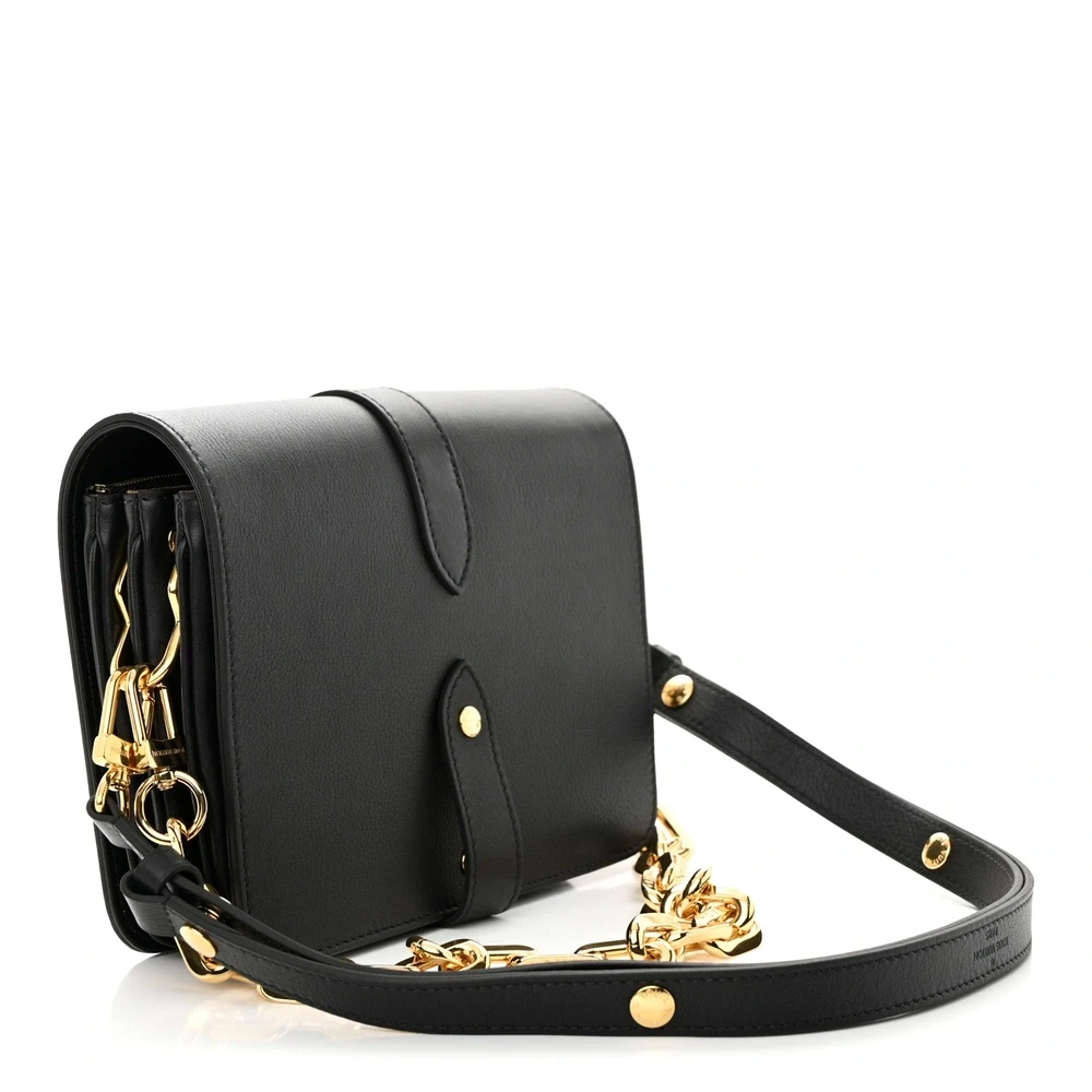 This Louis Vuitton Calfskin Rendez-Vous in Black is an elegant bag crafted from smooth black calfskin. The gold chain strap and black leather shoulder strap add versatility, while the brown monogram fabric interior with a zipper compartment completes this refined design.