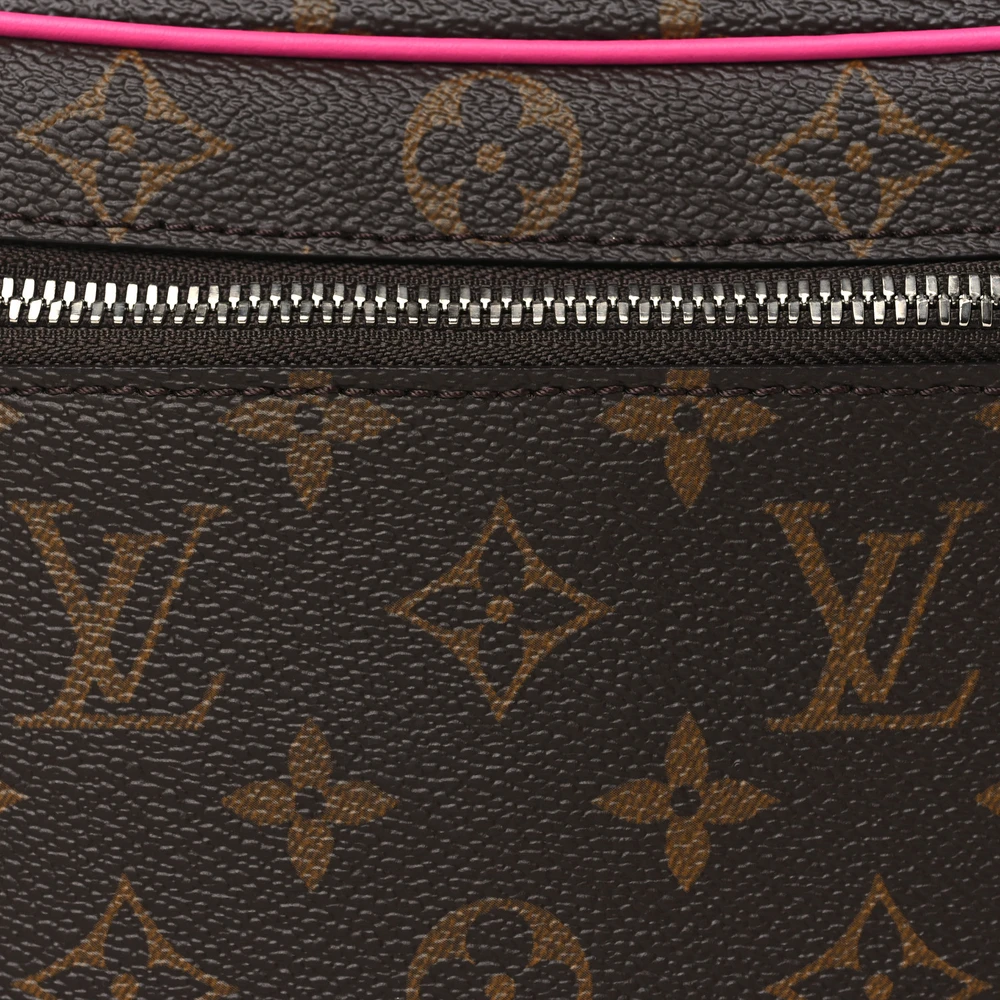 This Louis Vuitton Monogram Macassar Nice Mini in Fuchsia brings a lively twist to travel essentials with its classic monogram canvas and bright pink leather details. The brass wrap-around zippers open to a pink leather interior with a patch pocket, blending vibrant color with Louis Vuitton’s timeless elegance.